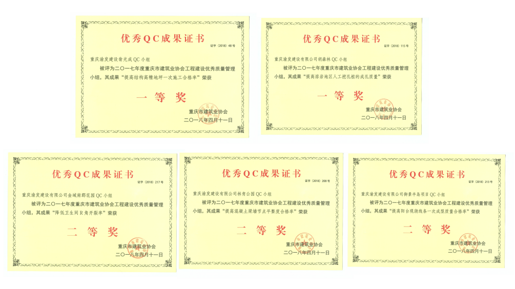 热烈祝贺重庆金年会app下载建设有限公司荣获 多个“2017年度重庆市建筑业协会工